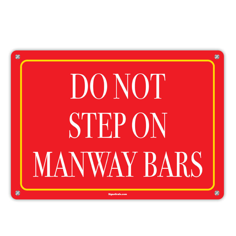 Introducing our "Do Not Step on Manway Bars" sign, designed to enhance safety and prevent accidents in industrial settings. Available in three durable materials: