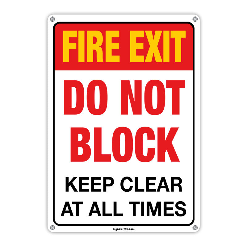 Fire Exit Do Not Block Keep Clear At All Times Sign