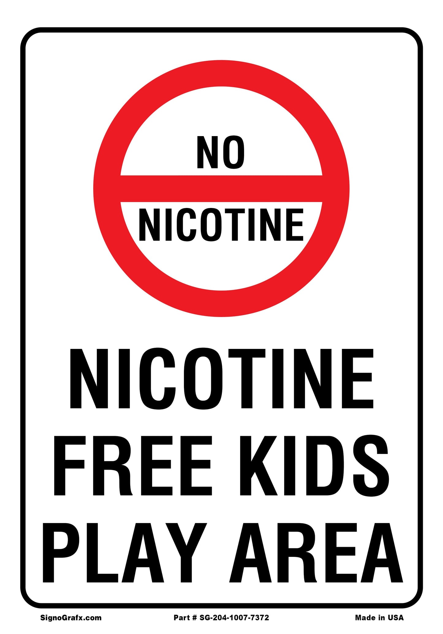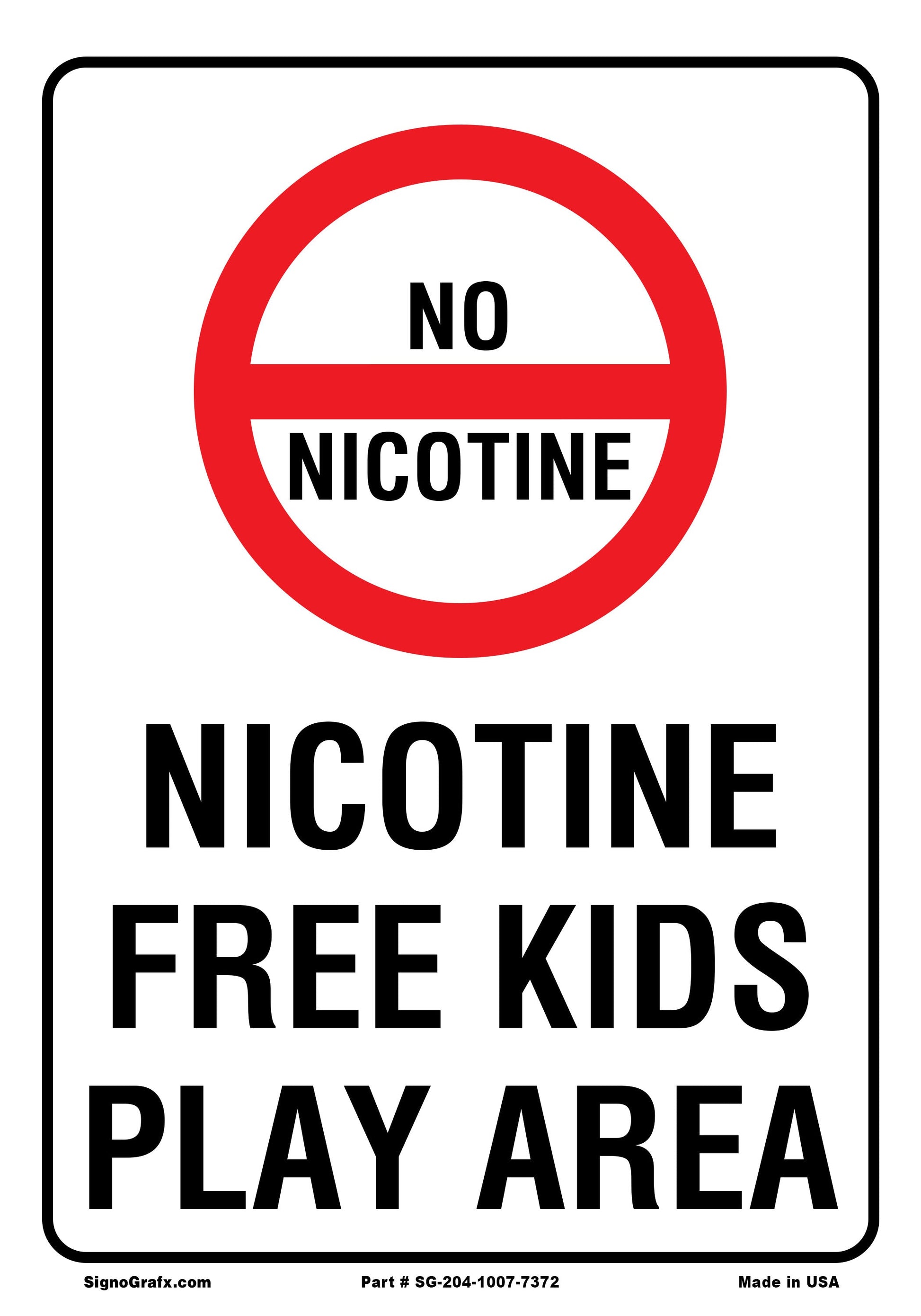 Nicotine Free Kids Play Area Sign