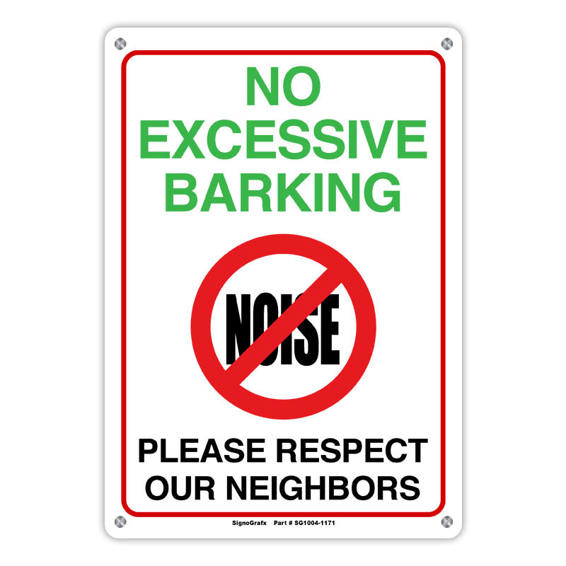 Introducing our "No Dogs Allowed Sign: No Excessive Barking, Please Respect Our Neighbors," designed to clearly communicate pet policies and promote neighborly respect. This sign features a straightforward message requesting pet owners to refrain from excessive barking to maintain a peaceful environment for everyone. Available in three durable materials: