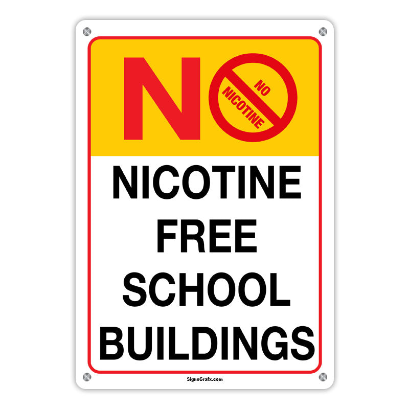 Ensure safety with our 'No Nicotine Free School Building' sign!