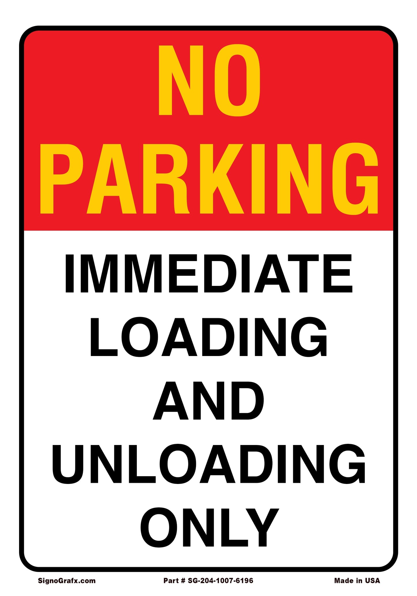 No Parking Immediate Loading And Unloading Only Sign