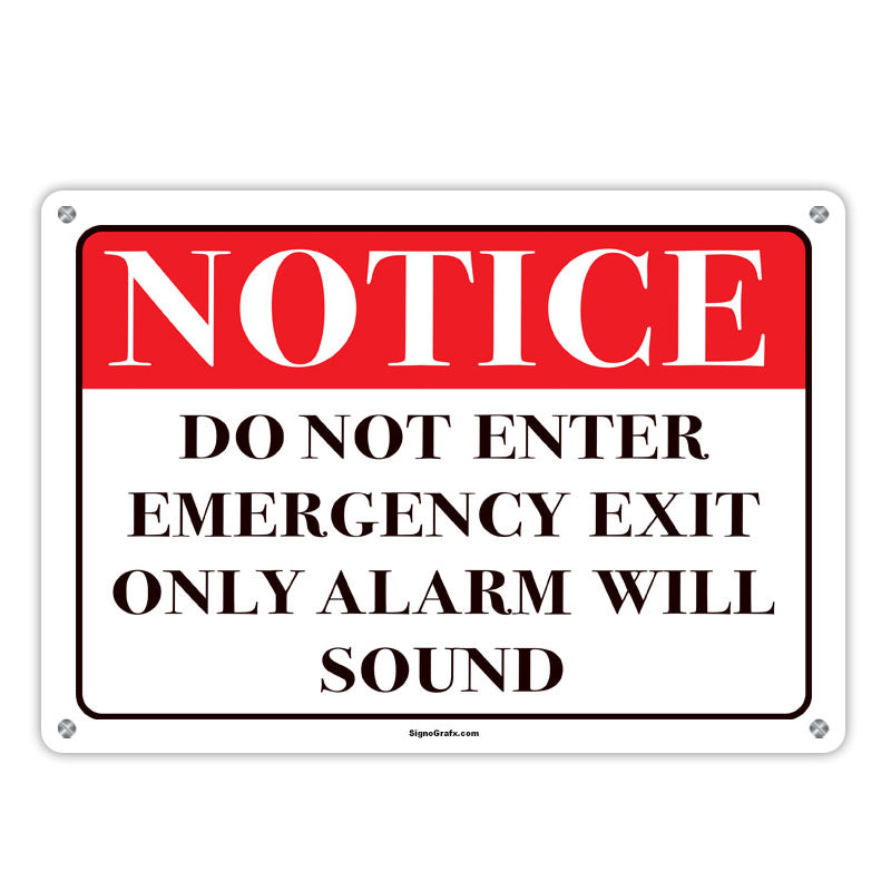 Notice Do Not Enter Emergency Exit Only Alarm Will Sound Sign