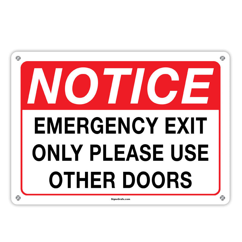 Notice Emergency Exit Only Please Use Other Doors Sign