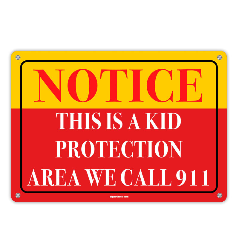 Ensure the safety of children with our 'Notice! This Is A Kid Protection Area We Call 911' sign!