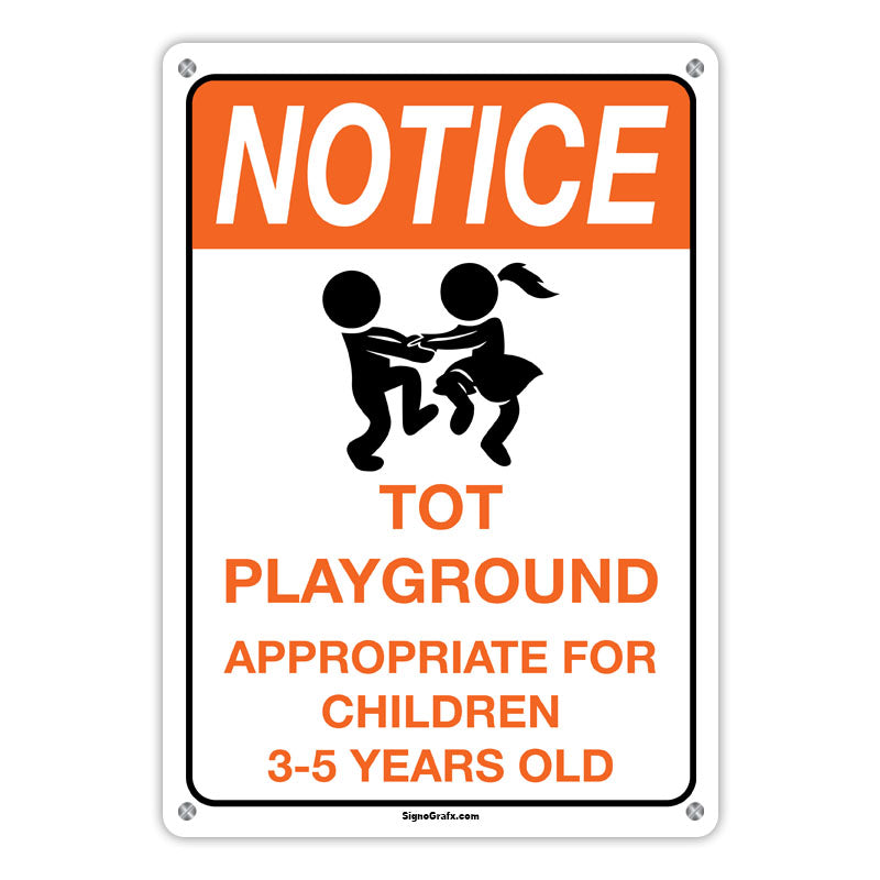 Ensure the appropriate use of playgrounds with our 'Notice! TOT Playgrounds Appropriate For Children 3-5 Years Old' sign!