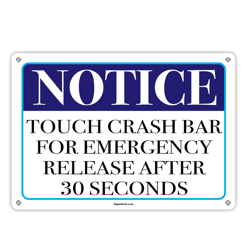 Metal: Crafted from high-quality Metal, this sign is built to withstand indoor and outdoor environments, offering durability and weather resistance. Its professional finish guarantees visibility and effectiveness in conveying the message to touch the crash bar for emergency situations.