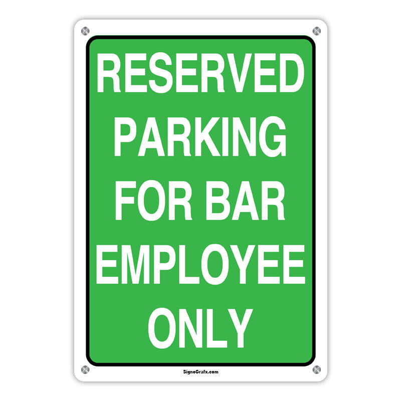 Introducing our "Parking Space Reserved Sign: Parking Reserved For Bar Employee Only," designed to clearly designate parking spaces exclusively for bar employees. This sign helps maintain order and organization in the parking area, ensuring that designated spots are available for employees who need them. Available in three durable materials: