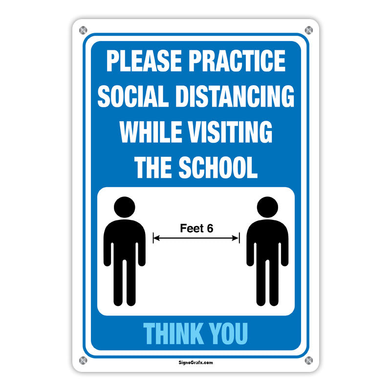 Ensure social distancing with our 'Please Practice Social Distancing While Visiting The School' sign!