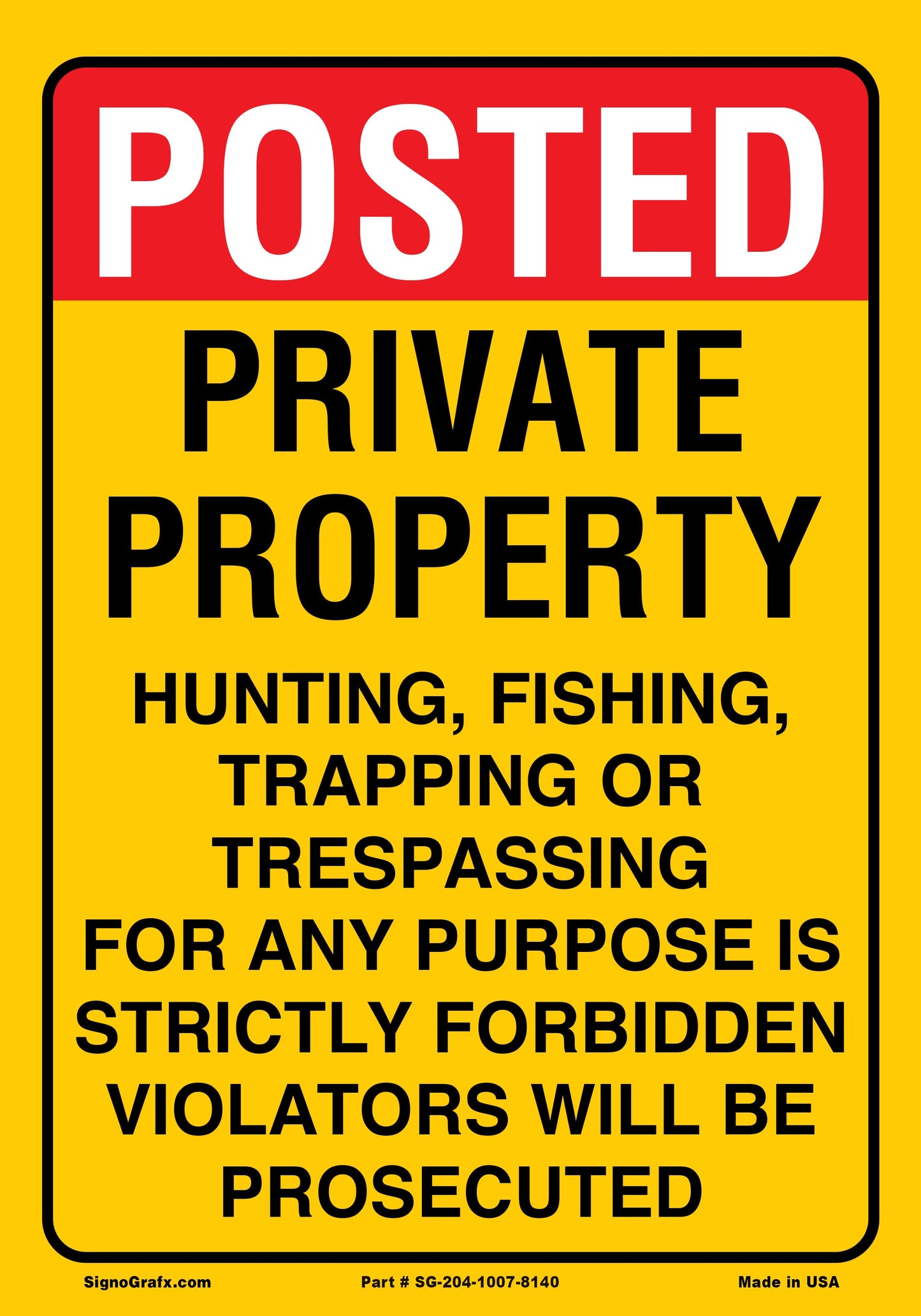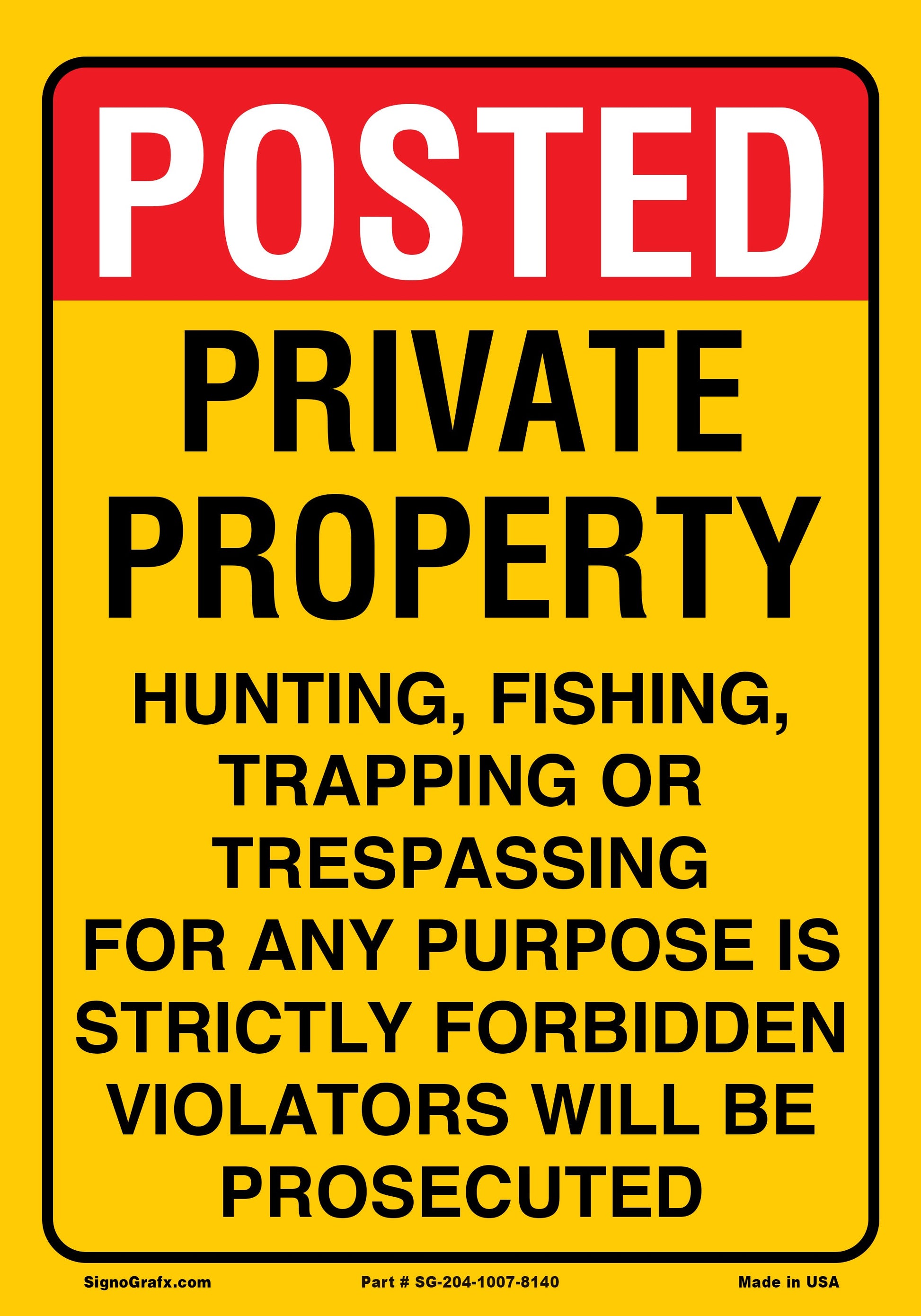 Posted Private Property Hunting, Fishing,Tapping Or Transpassing For Any Purpose Is Strictly Forbidden Violators Will Be Procecuted Sign