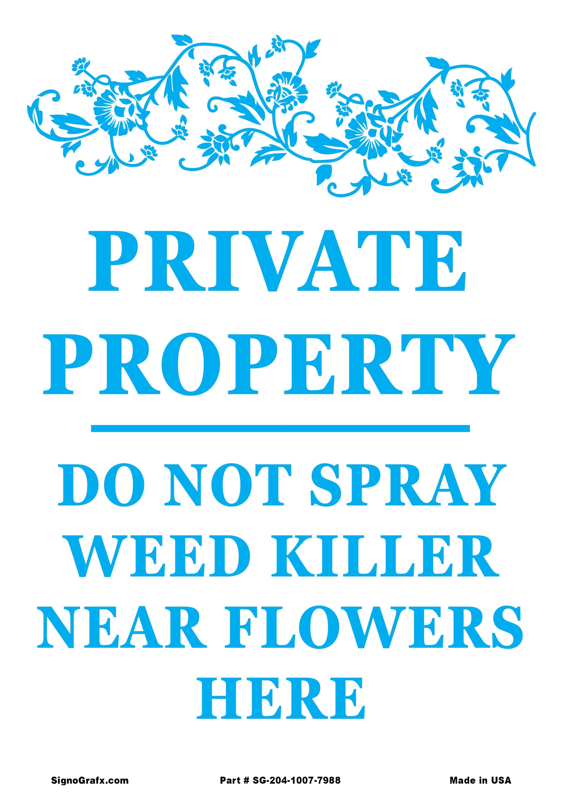 Private Property Do Not Spray Weed Killer Near Flowers Here Sign