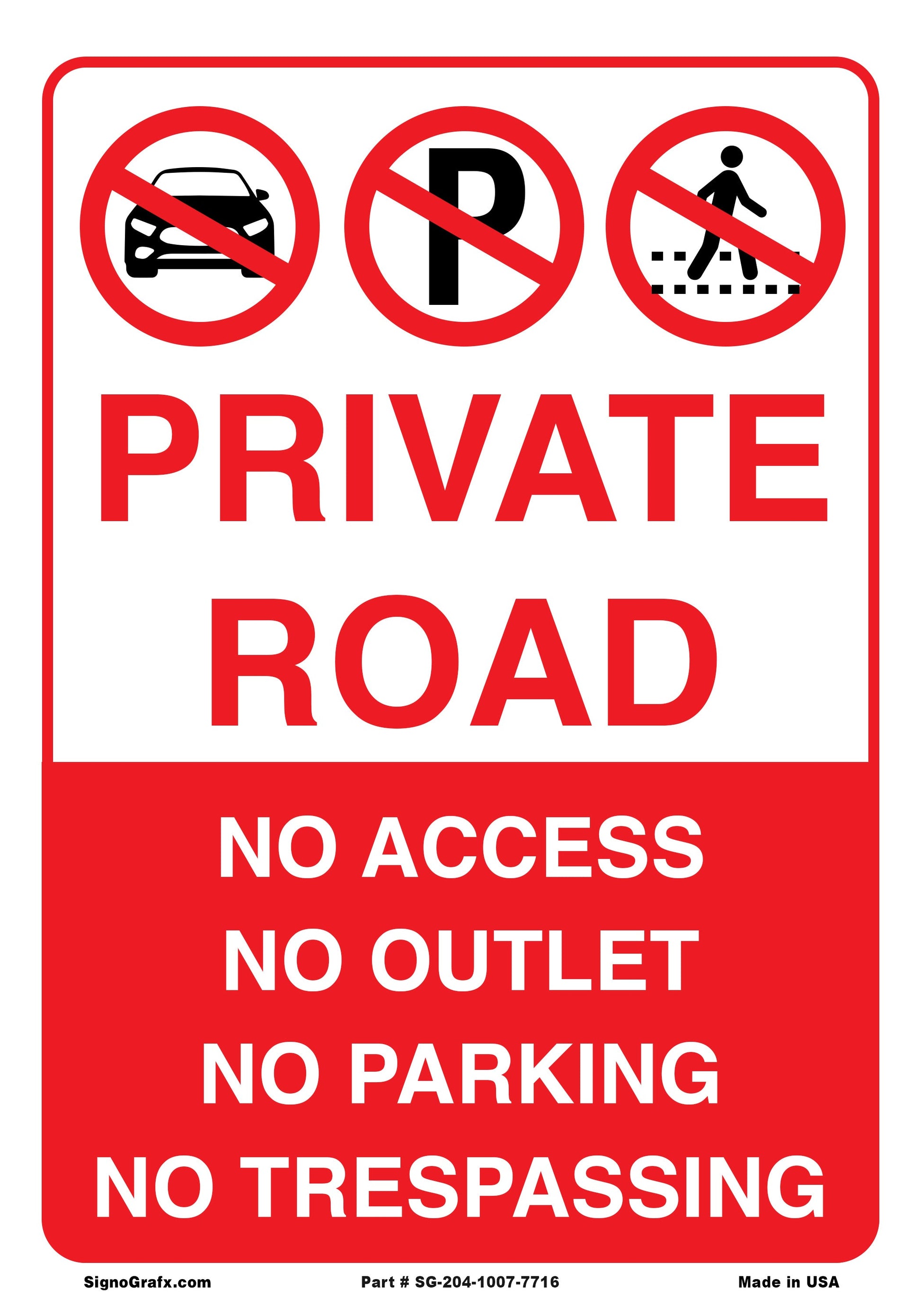 Private Road No Access No Outlet No Parking Sign