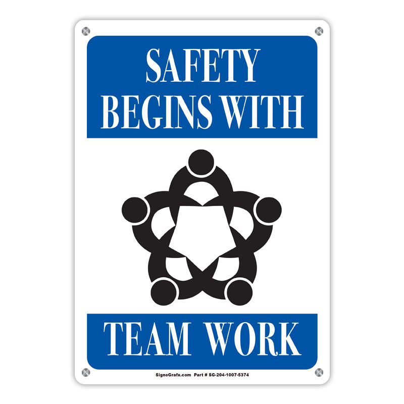 Safety Begins With Team Work Sign