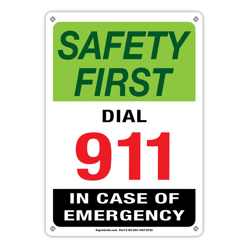 Safety First Dial 911 In Case Of Emergency Sign