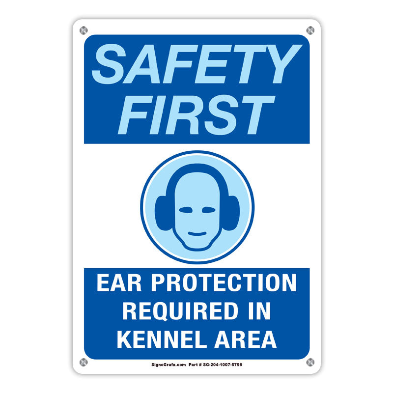 Safety First Ear Protection Required In Kennel Area Sign