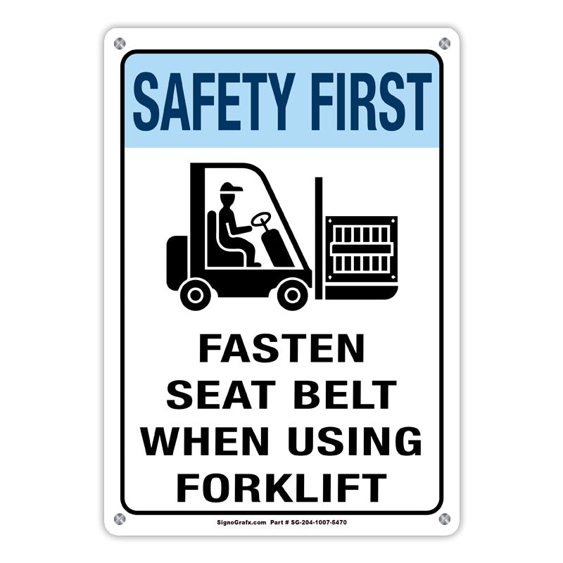 Safety First Fasten Sseat Bslt When Using Forklift Sign