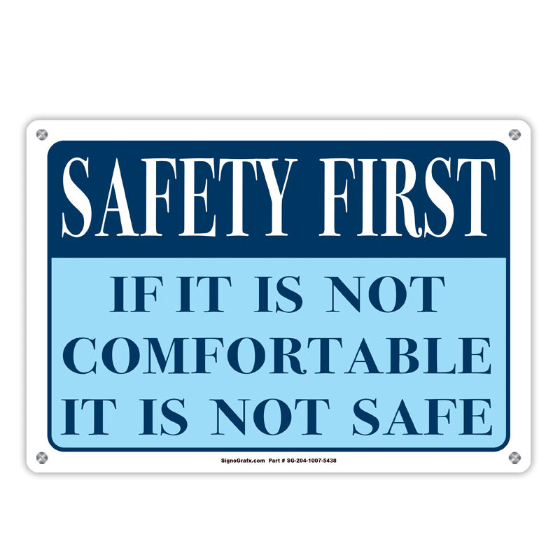 Safety First If It Is Not Comfortable It Is Not Safe Sign