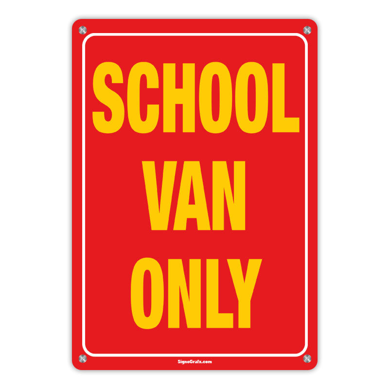 1. Metal: Crafted for durability and longevity, our Metal sign ensures a sleek and professional appearance, perfect for clearly designating parking for school vans only. Its weather-resistant properties guarantee visibility and effectiveness both indoors and outdoors.
