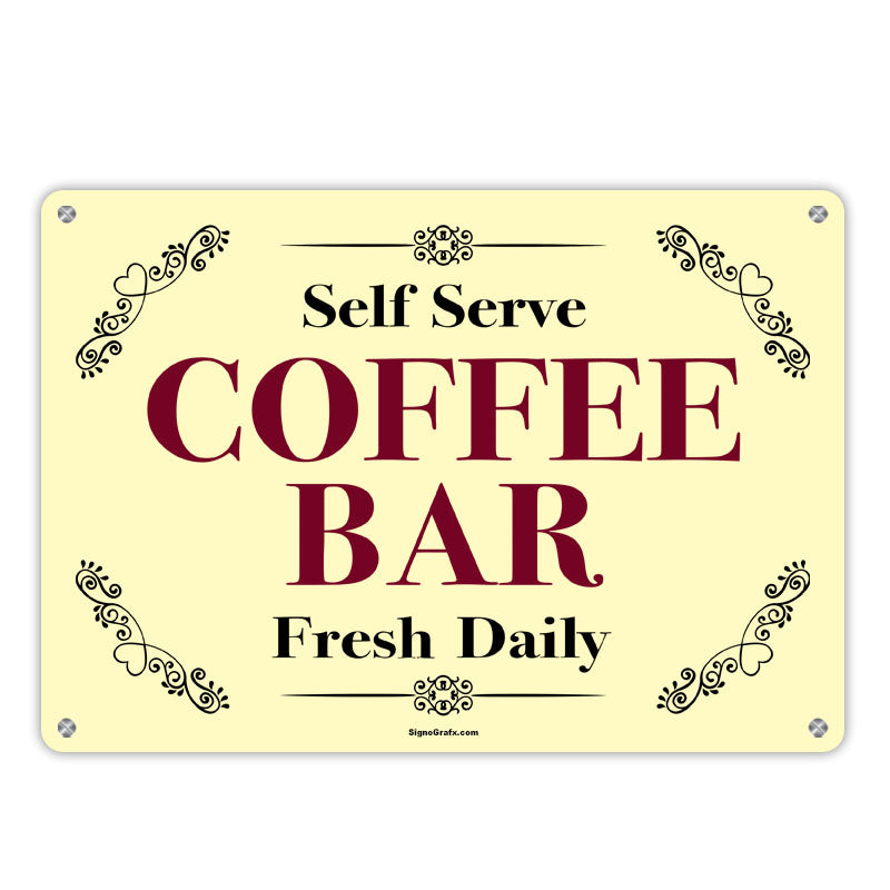 Transform your coffee bar into a cozy haven with our Self Serve Coffee Bar Sign featuring a Rustic Plank Pattern. Crafted to exude charm and warmth, this sign adds a touch of rustic elegance to your coffee station. Available in three versatile materials: