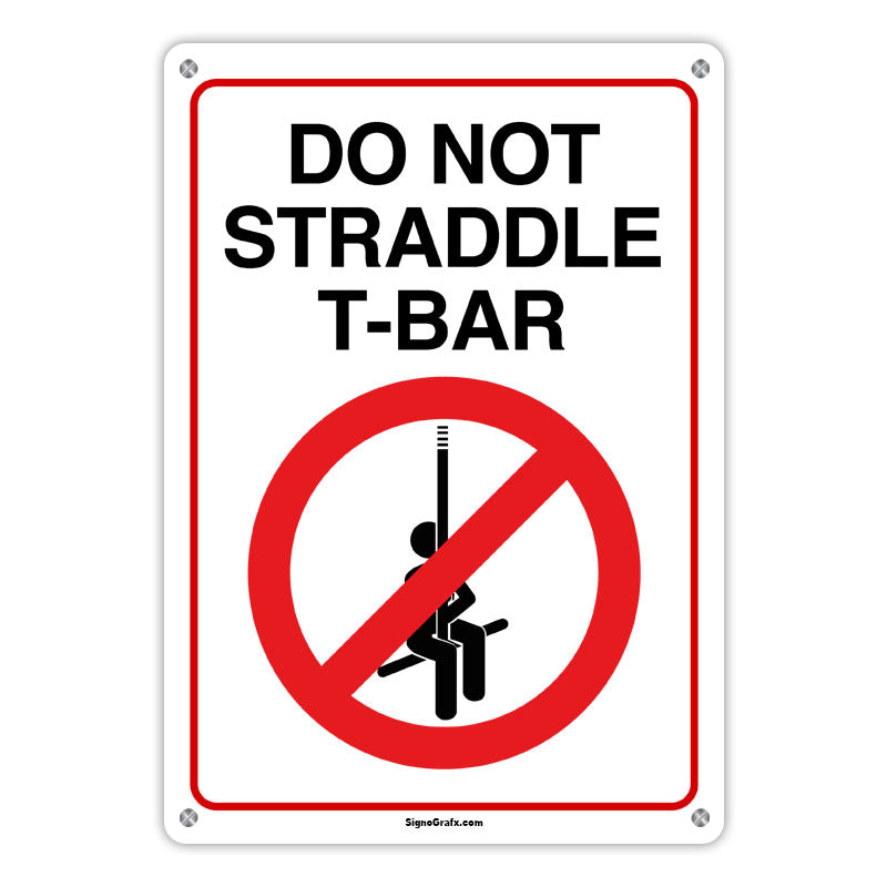 Introducing our "Ski Sign: Do Not Straddle T-Bar With Graphic," designed to enhance safety and communication on ski slopes. This sign features a clear graphic and text instructing skiers not to straddle the T-bar lift for their safety and the safety of others. Available in three durable materials: