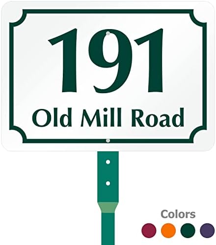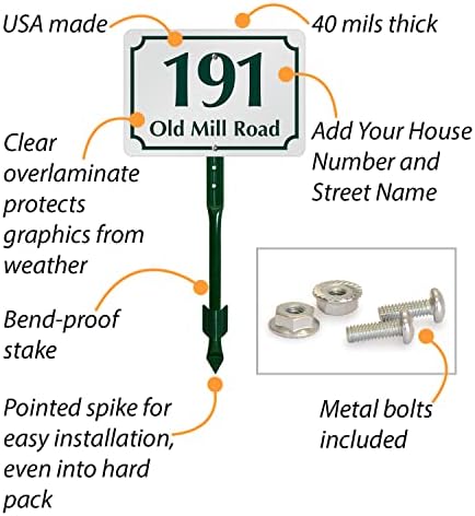 • DURABLE: Custom House Address Sign is made of heavy-duty 40 mil thick Metal. Sign kit features a bend-proof enamel-coated 18 inch steel stake. The finished sign and stake stands 21.5 inches tall. Metal signs outlast plastic signs, which can be torn off more easily.