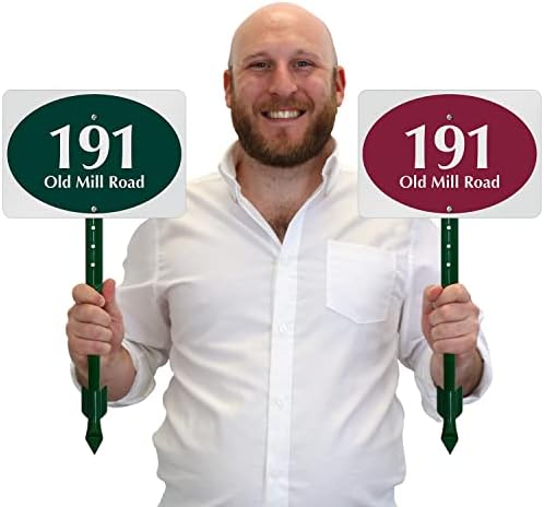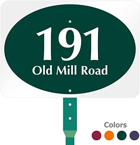 DURABLE: Custom House Address Sign is made of heavy-duty 40 mil thick Metal. Sign kit features a bend-proof enamel-coated 18 inch steel stake. The finished sign and stake stands 21.5 inches tall. Metal signs outlast plastic signs, which can be torn off more easily.
