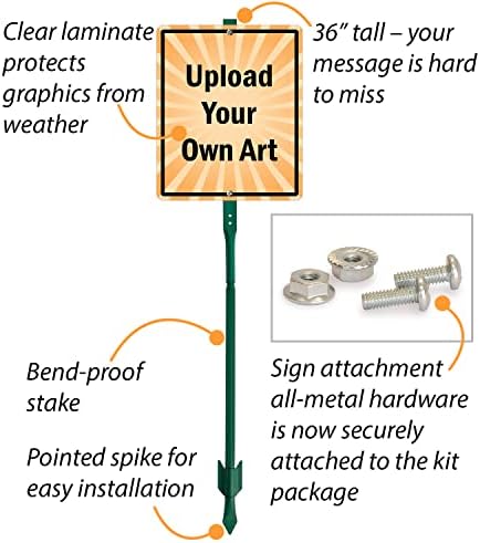 DURABLE & REFLECTIVE: Completely Customizable Yard Sign is made of heavy-duty 40 mil thick engineer grade reflective Metal. Sign kit features a bend-proof enamel-coated 3 foot steel stake. The finished sign and stake stands 36 inches tall. Metal signs outlast plastic signs, which can be torn off more easily. They easily withstand harsh outdoor conditions for years.