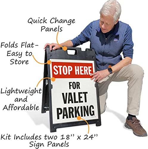 PACK CONTENTS: Valet Parking Sign kit includes two printed 18” x 24” plastic sign panels and a frame.