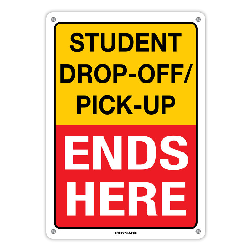 Ensure safety with our 'Student Drop-Off/Pick-Up Ends Here' sign!