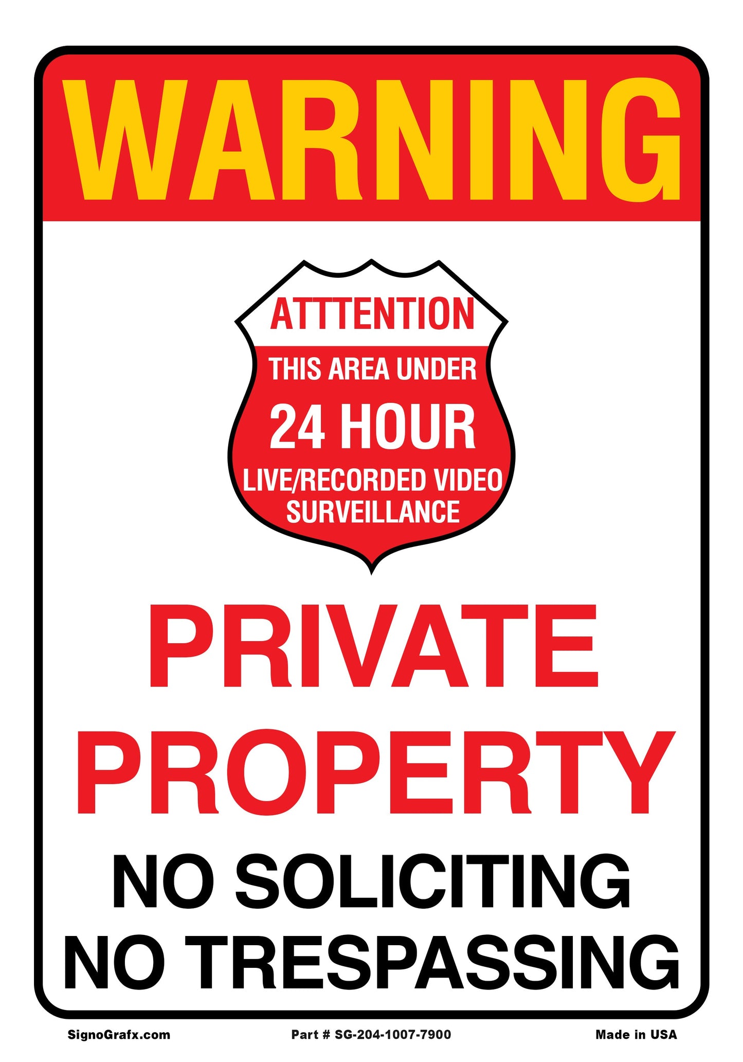 Warning Private Property No Soliciting No Trespassing Sign