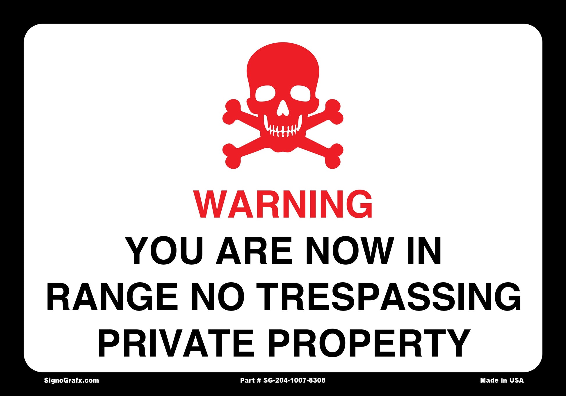 Warning You Are Now In Range No Trespassing Private Property Sign